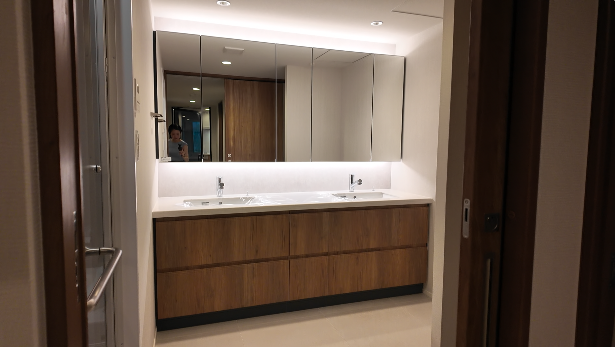 洗面スペースは便利な2ボウル仕様で、忙しい朝もスムーズに。