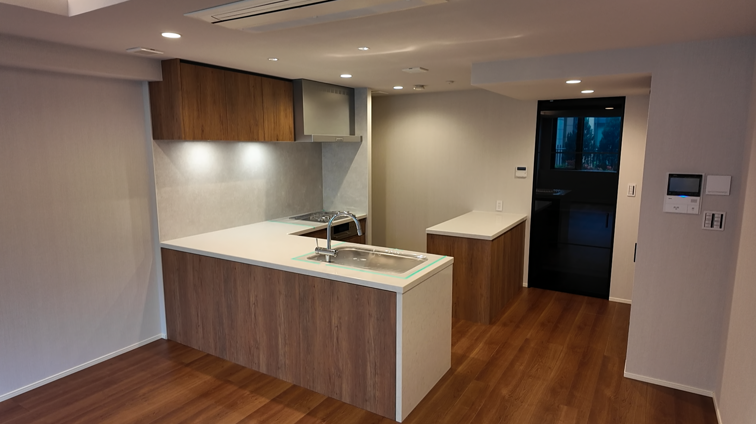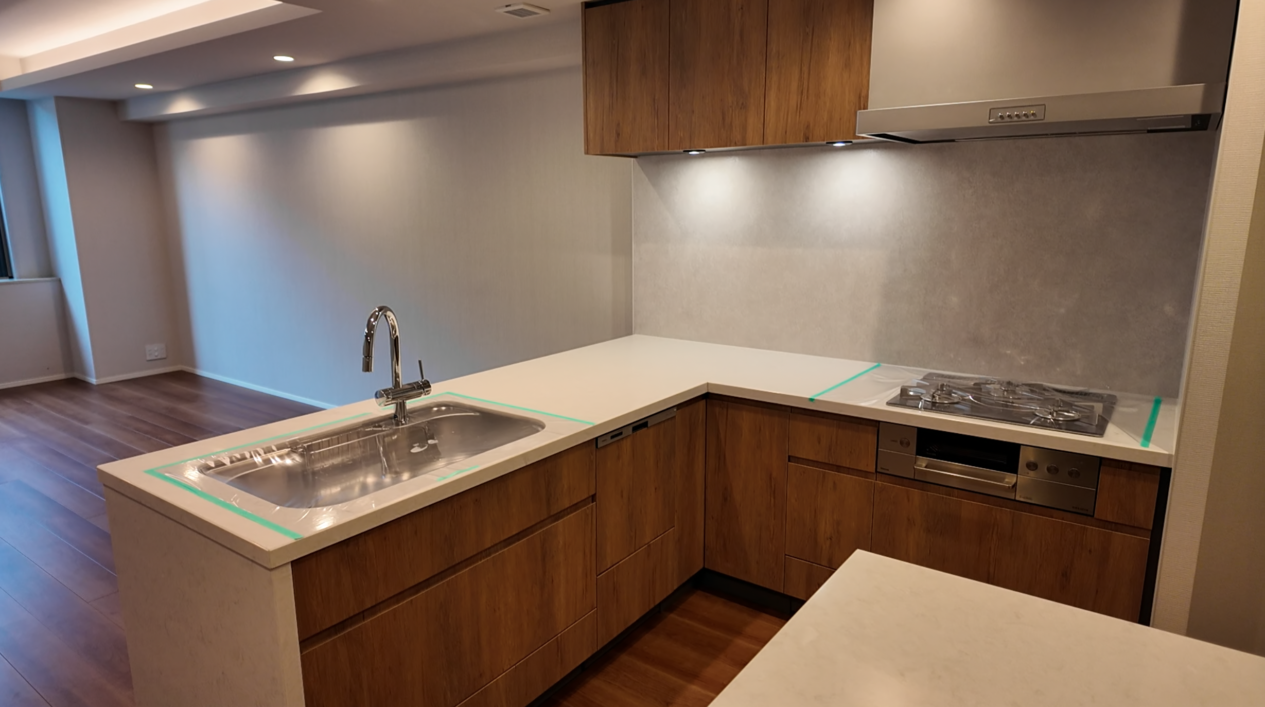 「見せる」キッチンとして、美しさも兼ね備え、動線のイメージも描きやすい整ったレイアウト。
