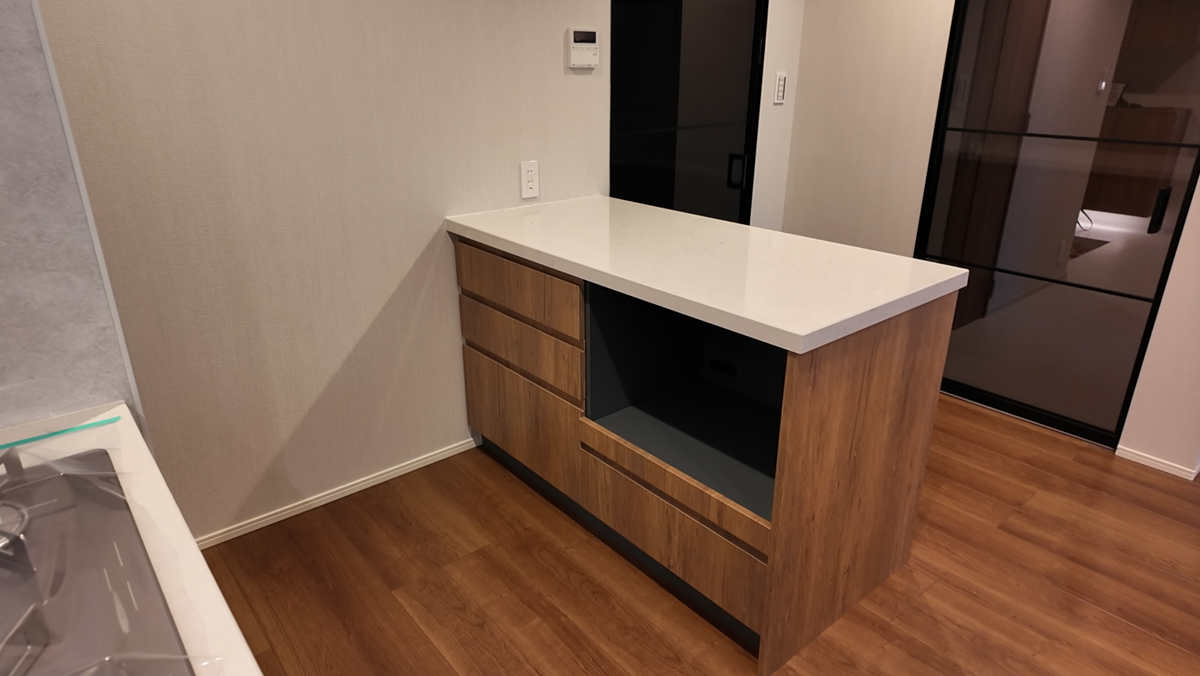 調味料も炊飯器もすっきり隠せる造作家具の収納力。